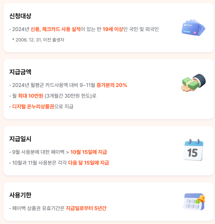 - 환급 대상: 9~11월 카드 사용액이 전년도보다 증가한 경우